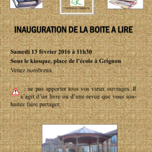 L’inauguration de cette boite à livre aura lieu le samedi 13 février 2016 mais une dizaine de livres sont déjà en place.