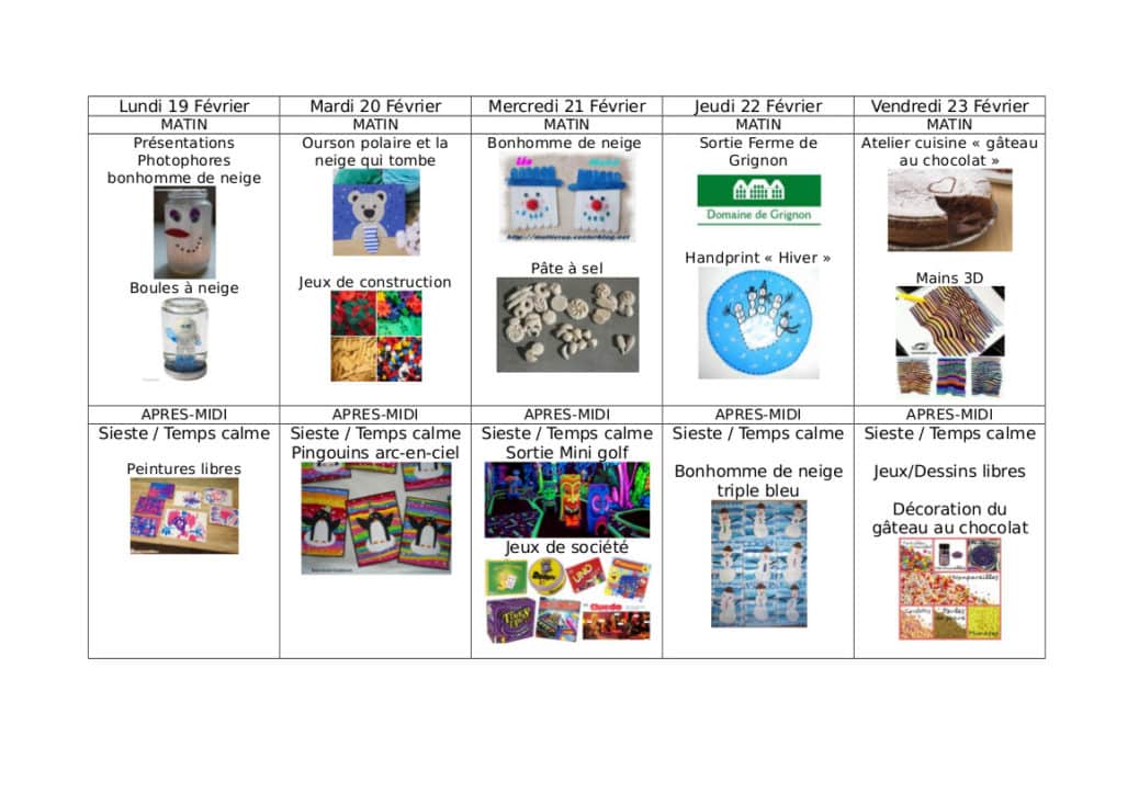 Programme du Centre de Loisirs durant les vacances de Février 2018 3 février 2018 Programme Centre de loisir Semaine 1 Février 2018 (1244 téléchargements ) Programme Centre de loisir Semaine 2 Février 2018 (397 téléchargements ) Partager la publication "Programme du Centre de Loisirs durant les vacances de Février 2018" XFacebookLinkedInPartager...PinterestPocketWhatsAppE-mailMarque-pageBluesky Publié dans Enfance