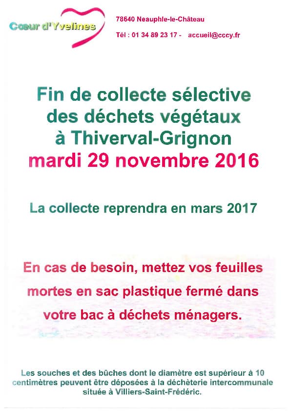 Ramasage des déchets végétaux 17 octobre 2016 En cas de besoin, mettez vos feuilles mortes en sac plastique fermé dans le bac à déchets ménagers. Partager la publication "Ramasage des déchets végétaux" XFacebookLinkedInPartager...PinterestPocketWhatsAppE-mailMarque-pageBluesky Publié dans Actualités